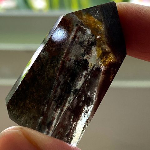 DC0118綠幽靈水晶-黑雲母、白兔毛共生#起運#聚財#42.0X13.0mm