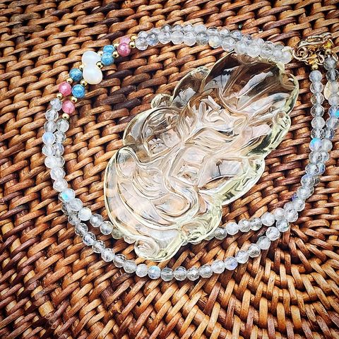 FX263🦊開運瑞狐🦊吸金系💰黃兔毛水晶手工雕刻彎月祈福狐狐