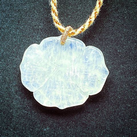 FX249🦊開運瑞狐🦊斯里蘭卡藍光蕩漾月光石手工雕刻花瓣狐狐🌸舒緩壓力更好眠